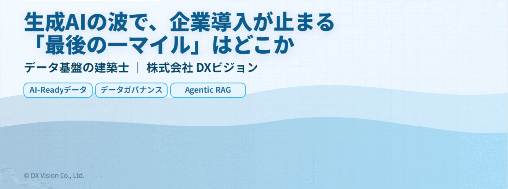 キーワード:生成AI導入, 企業AI, データ基盤, データガバナンス, RAG, AI-Readyデータ, 非構造化データ, データサイロ, ハルシネーション対策, データインテリジェンス